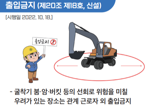 『산업안전보건기준에 관한 규칙』이 개정되면서 "굴착기(굴삭기, 백호, 포크레인, ...)"에 대한 안전수칙이 신설되었습니다.