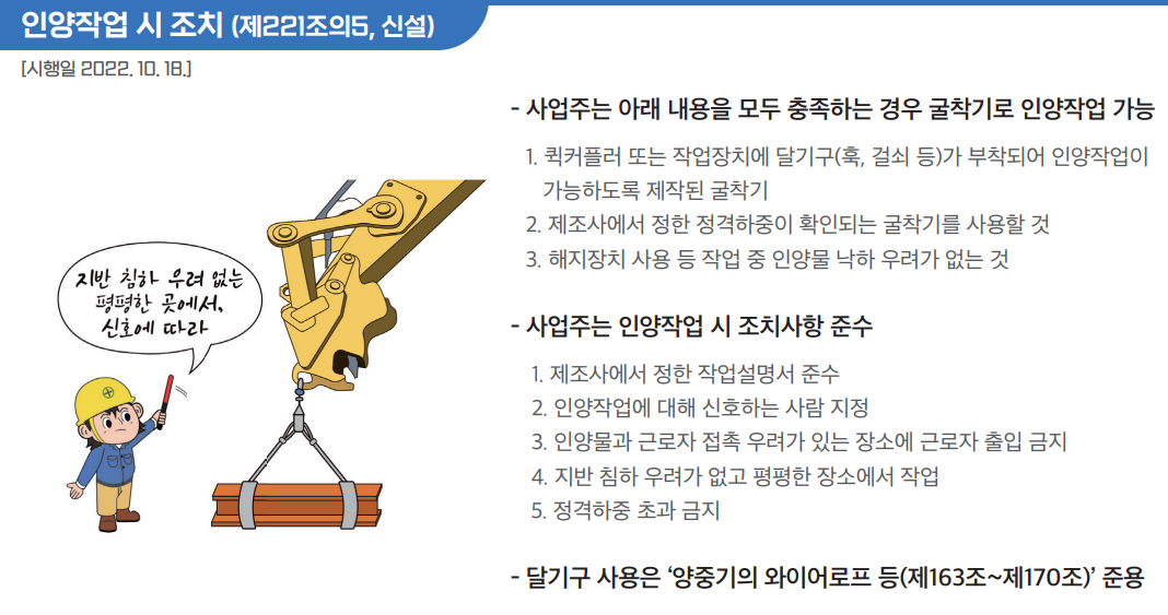 3. 인양작업용 달기구(와이어로프, 달기체인 등)는 『산업안전보건기준에 관한 규칙』 제163조~제170조의 내용을 준수해야 합니다.