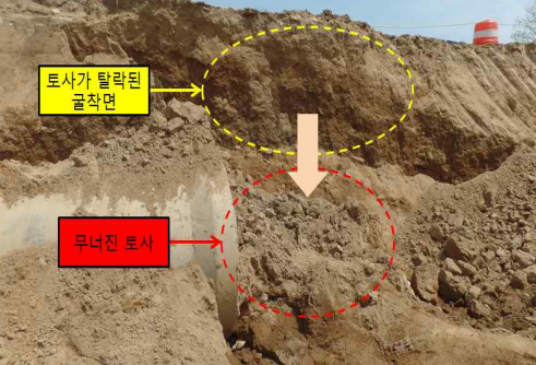 - 굴착면의 높이가 2m 이상인 지반 사전조사를 실시하지 않고, 작업계획 없이 임의 작업함 - 지반의 붕괴 등에 의한 위험 방지 조치 미실시